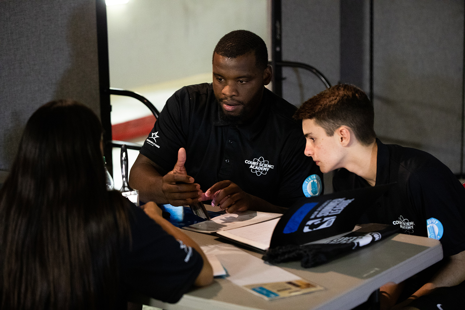 The goal of the Court Science Classroom was to teach basketball analytics through S.T.E.M. (Science, Technology, Engineering and Math). Court Science Classroom took place during the NBA Summer League, in partnership with 4th Family, a non-profit organization. Subsequent follow-up seminars and workshops took place throughout the school year.