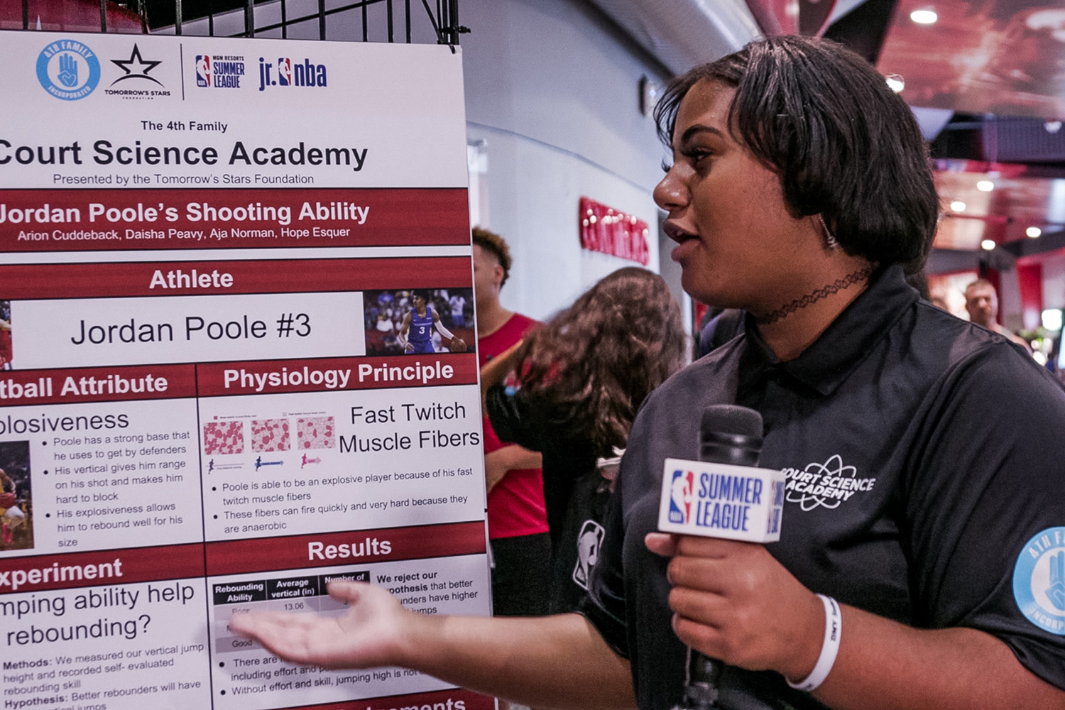 Tomorrow’s Stars Foundation partnered with the 4th Family Foundation to launch Court Science Classroom, a hands-on sport science & analytics program featuring science, technology, engineering, and math (S.T.E.M.) to study basketball performance and analyze players and teams at the NBA Summer League.